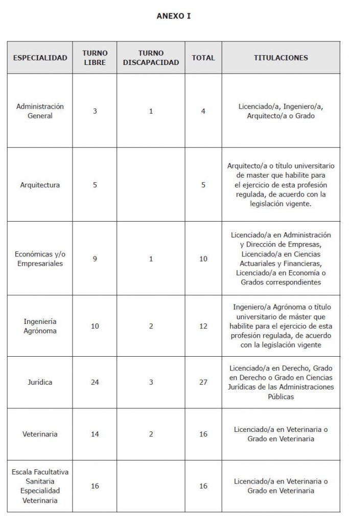 Convocatoria de 90 plazas de titulados superiores de 6 especialidades y de la Escala Facultativa Sanitaria Especialidad Veterinaria